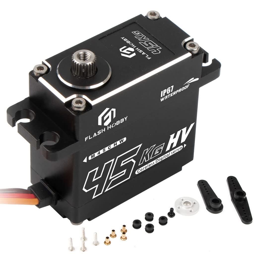 FLASH HOBBY 45Kg Full Waterproof Coreless Servo Motor Standard 180 Degree HV 8.4V High Torque RC Digital Servo for RC Car DIY Truck Robot Parts