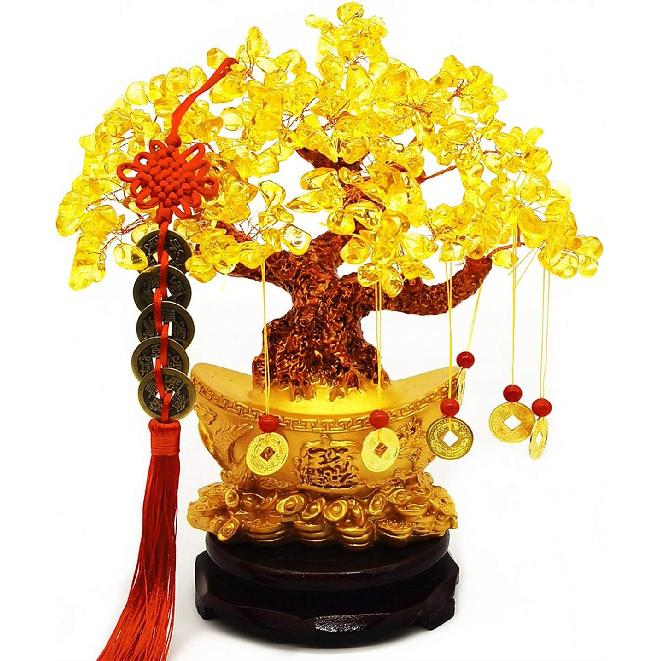 Feng Shui Yellow Quartz Crystal Tree, Bonsai Style Money Trees Decoration for Luck and Wealth (Yuan Bao)