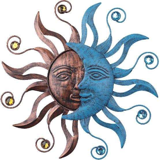 MUMTOP 13.26 Inch Metal Sun Moon Wall Decor, Inspiational Wall Sculpture Hanging Decorations Art for Indoor Outdoor Home Living Room Office Yard