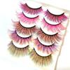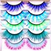 Sunniess Ombre Colored Lashes Silk Protein Fluffy Wispy Volume Fake Lashes for Halloweens Cosplay Party Stage Russian D Curl Lashes with Color Make