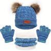 3Pcs/Set Kids Winter Beanie Hat Scarf Gloves Warm Suit For Children 1-8 Years Old Girls Boy Warm Double Pompoms Knited Cap