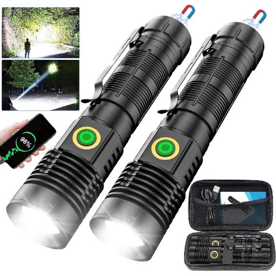 Flashlights High Lumens Rechargeable(Battery Included), 20000 Lumens Super Bright Powerful Small Magnetic Flashlight, 6 Mode, Zoomable, Waterproof,