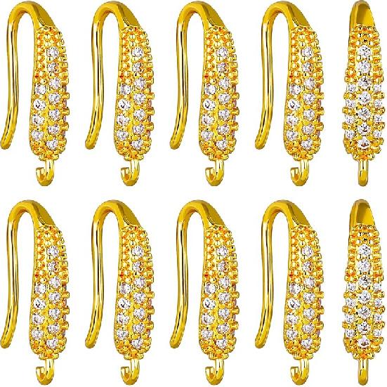 BEEFLYING 20PCS Golden Cubic Zirconia Earring Hooks Ear Wires Findings with Dangle Loops for Women DIY Jewelry Making Crafts