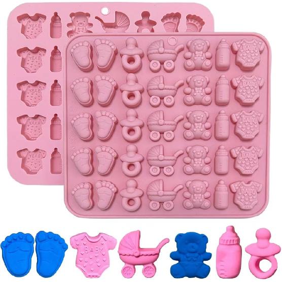 2pcs Baby Shower Chocolate Mold, 35 Cavity Cute Baby Silicone Molds Baby Onesie Baby Bottle Pacifier Molds Baby Shower Candy Mold For Cake Decoration