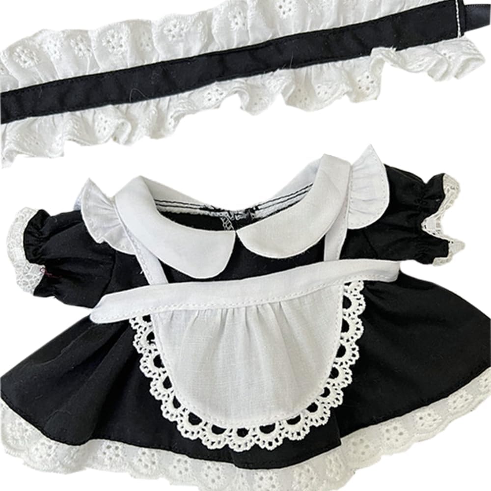 Niannyyhouse 20cm Plush Doll Clothes Headwear Dress Apron Maid Suit 8in Soft Stuffed Plush Dress Up (Black)