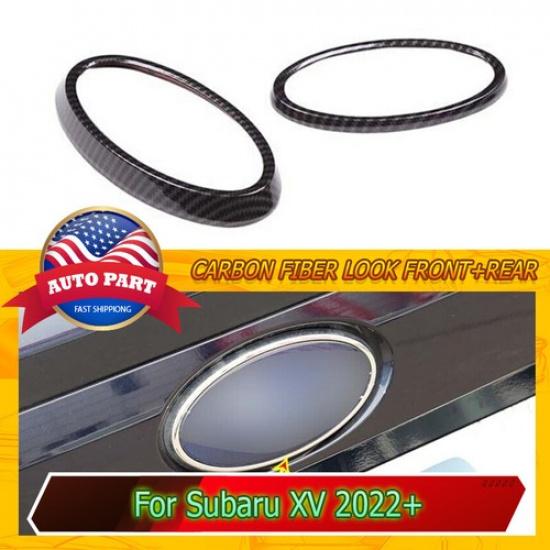 Carbon Fiber For 2022+ Subaru XV Front Rear Car Logo Emblem Badge Ring Cover ABS