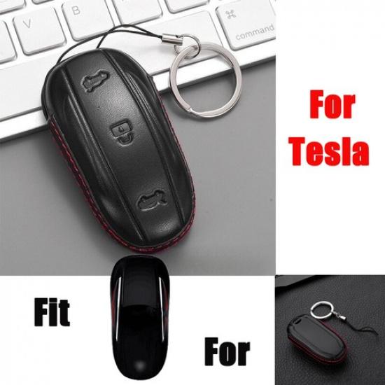 Genuine Leather Car Key Fob Case Cover Bag Keychain For Tesla Model X 2016-2020