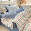 3/4 Pcs Blue Checkered Bedding Set Simple Style Soft Skin Friendly Duvet Cover Flat Sheet and Pillowcases Single Double Bed Sets