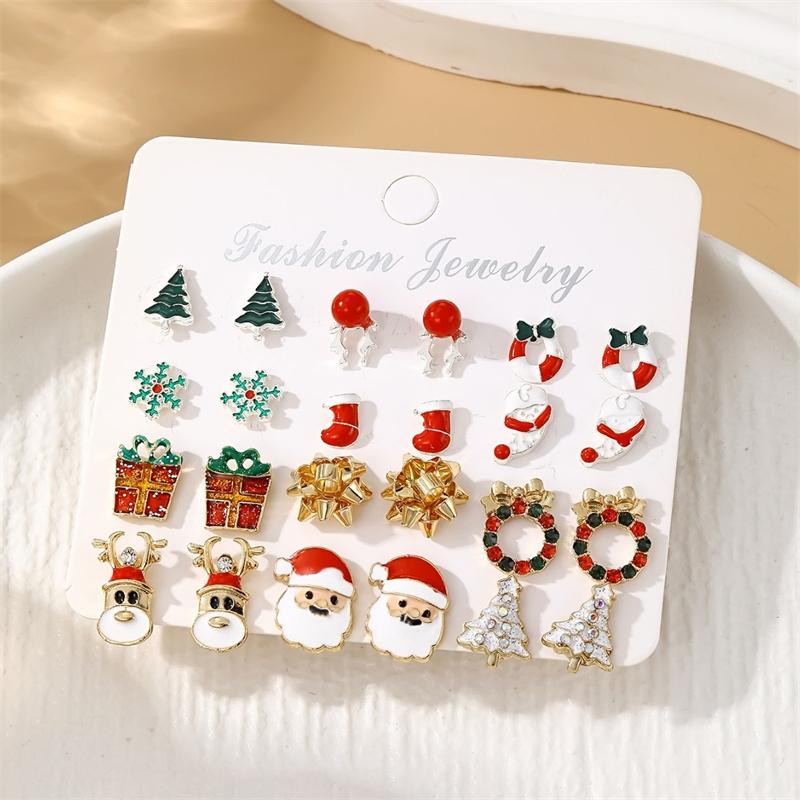24pcs Christmas Combination Earrings Set for Women Small Shiny Zircon Xmas Tree Santa Claus Snowflake Earring Party Jewelry Gift