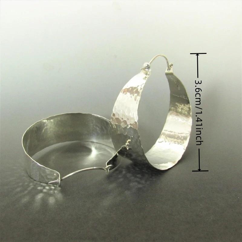 Vintage Style Silver Color Metal Geometry Die Casting Pattern Hoop Earrings for Women Jewelry