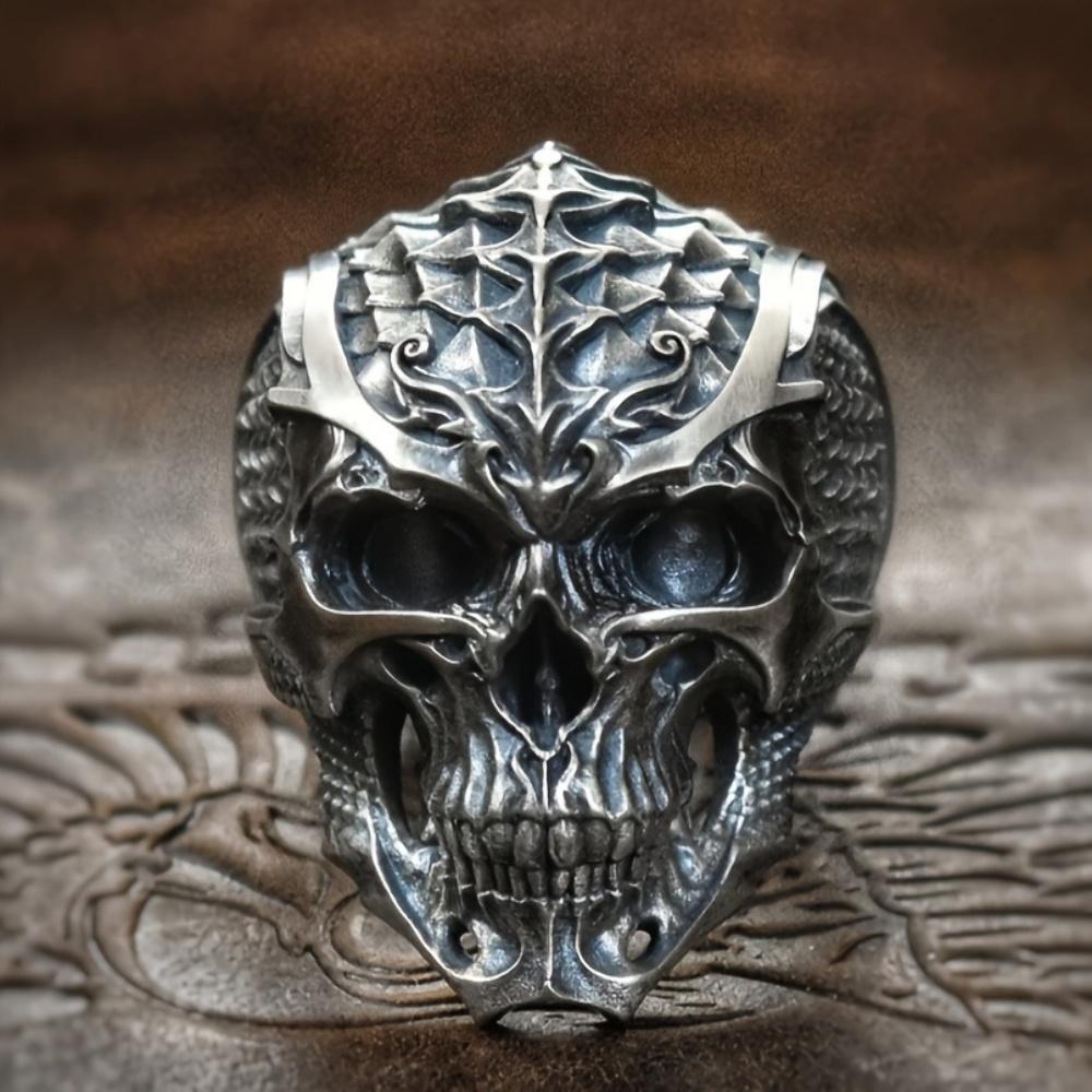 Vintage Punk Stainless Steel Skull Rings For Men Gothic Punk Dragon Scaled Skull Rings Hip Hop Men Motorcycle Rock Biker Jewelry