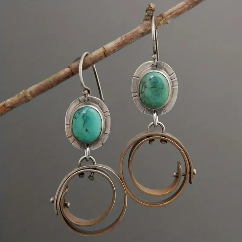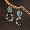 Vintage Bohemian Style Tibetan Silver Geometric Pendant Women's Ethnic Blue Pendant Earrings Jewelry
