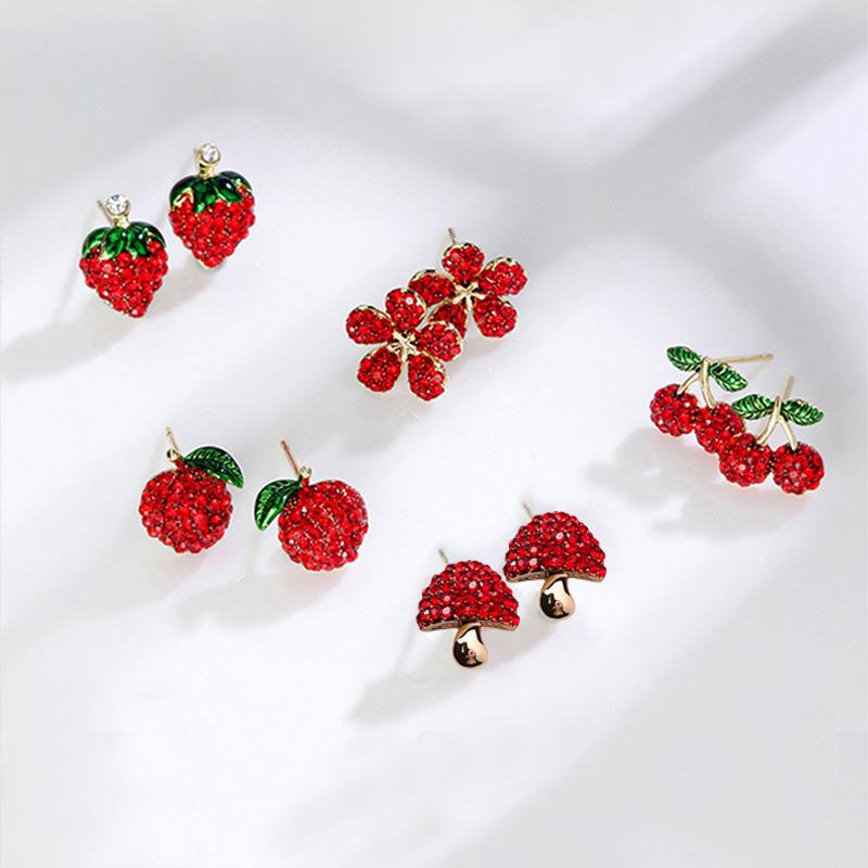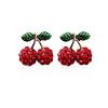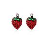 Temperament Red Zircon Strawberry Earrings for Women Shiny Rhinestone Cherry Flower Earrings Delicate Party Wedding Jewelry