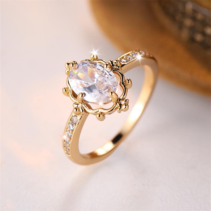 Delicate Female Oval Stone White Zircon Wedding Bands Antique Gold Color Promise Engagement Rings For Women Mothers Day Jewelry