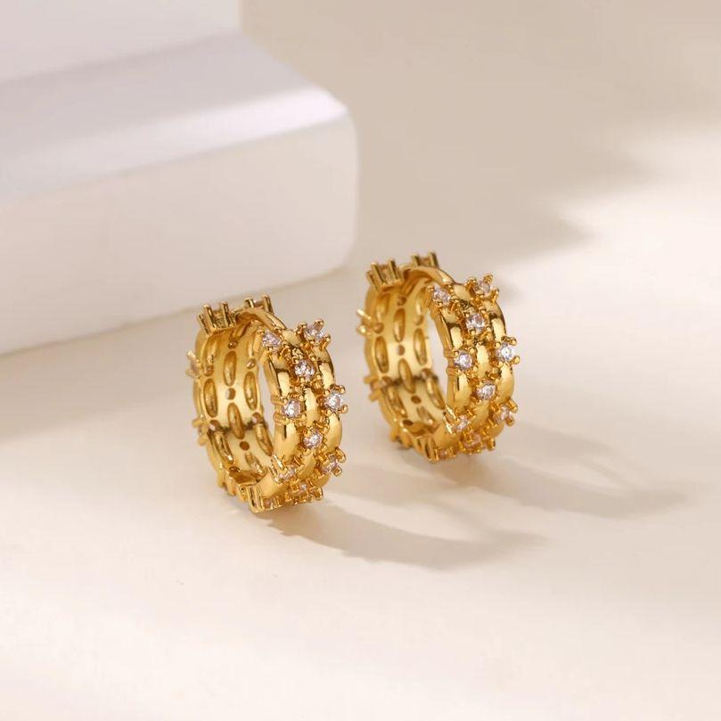 Pave Zirconia Small Hoop Earrings for Women Gold Color Geometric Piercing Earrings Wedding Jewelry Gift