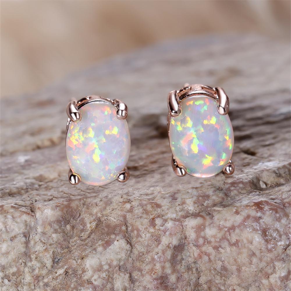 Green Blue White Opal Small Oval Stone Stud Earrings For Women Vintage Rose Gold Color Wedding Jewelry Bridal Engagement Gifts