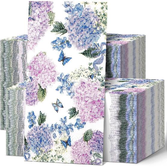 Exquisite and Decorative: designed with gorgeous hydrangea flowers life like flowers and butterflies, decorative dinner butterfly napkins are exquisite and delicate, with purple, and blue colors to add an elegant and pleasant touch to your guests