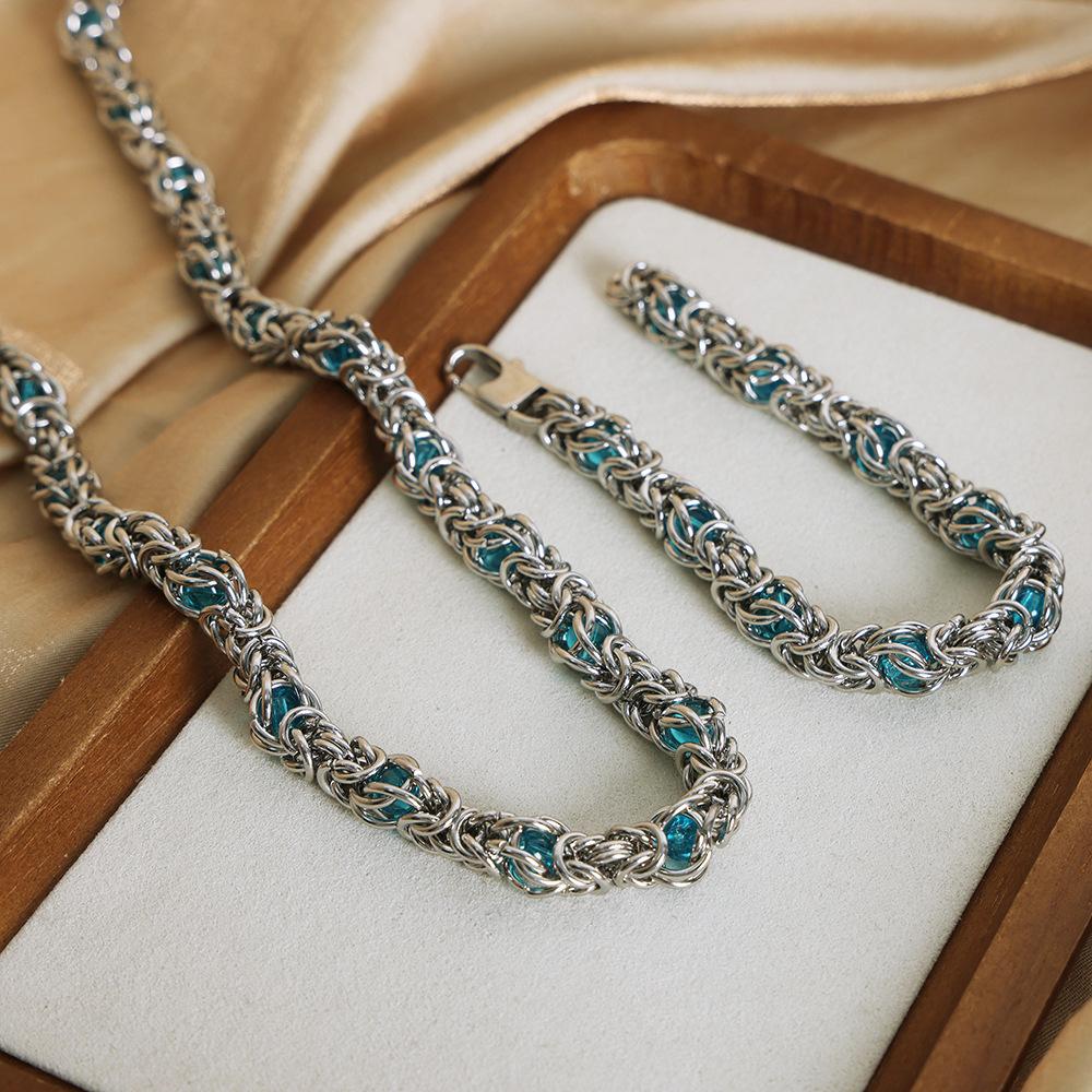 Men's Biker Punk Hip Hop Rock Jewelry Accessories Stainless Steel Byzantine Chain Braided Chain Necklace Bracelet Set