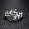 Korean Leaf Design Opening Rings For Women Sparkling Cubic Zirconia CZ Adjustable Ring Party Daily Wear Jewelry Gift