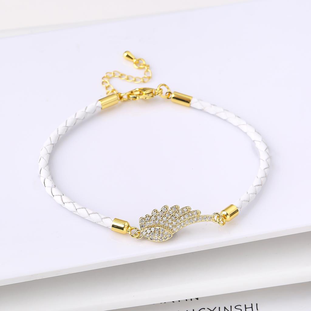 White Cubic Zircon Angel Wings Leather Rope Braided Bracelet for Women Girls Daily Party Lucky Jewelry Fine Birthday Gift