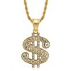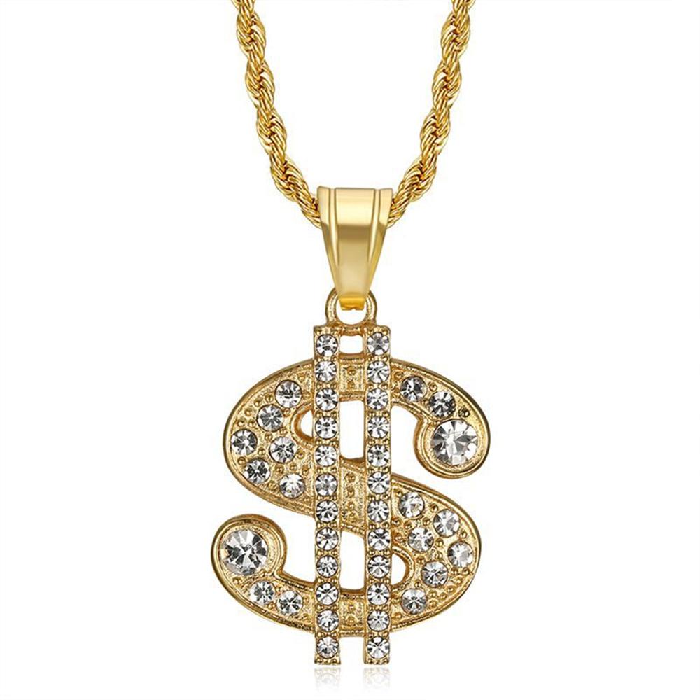 Hip Hop Iced Out Bling Dollar Sign Pendant Gold Color Stainless Steel Rapper Money Necklace For Men Women Hippie Jewelry Gift