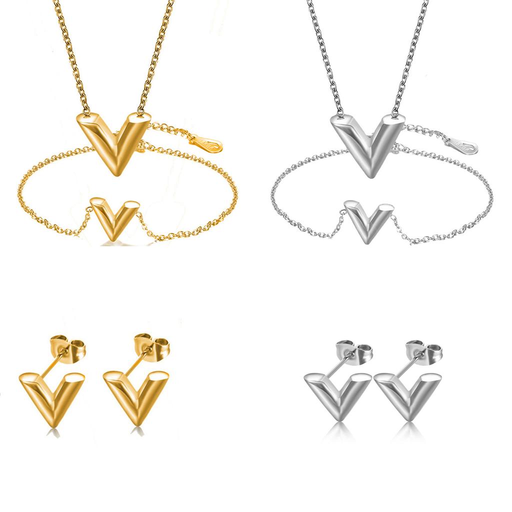 4pcs/set Stainless Steel Letter V Bracelets For Women Girl Bangle Jewelry Set Gift For Birthday Party , Mothers Day