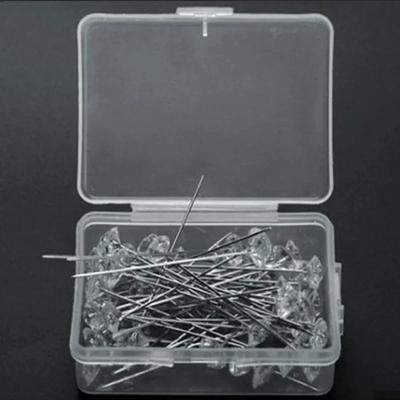 1Box 50Pcs Alloy Pins Transparent Diamond Pin DIY Wedding Bouquet Pins Stitching Needles Plastic Box Sewing Accessories