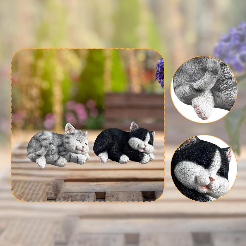 Cat Figurine Art Crafts Decorative Garden Statue for Shelf Outside Landscape