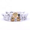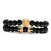Noter 2pcs/set King Lion Bracelets Men Luxury Crown Braslet 8mm Natural Stone Beaded Brazalete Distance Couple Braclet Pulseira