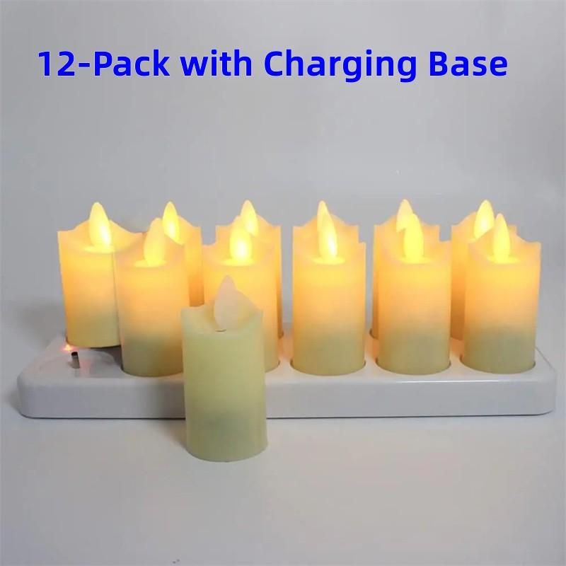 12-Pack Rechargeable Dancing Waving Flame LED Tealight Votive Swinging Wick Candle Lamp Xmas Wedding Home Decoration-Warm White