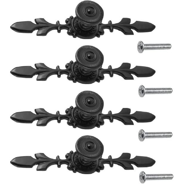 Pull Handle, Vintage Style Zinc Alloy Door Knob with Screw, Fit for Drawer Cabinet, 4-Pack (Black)
