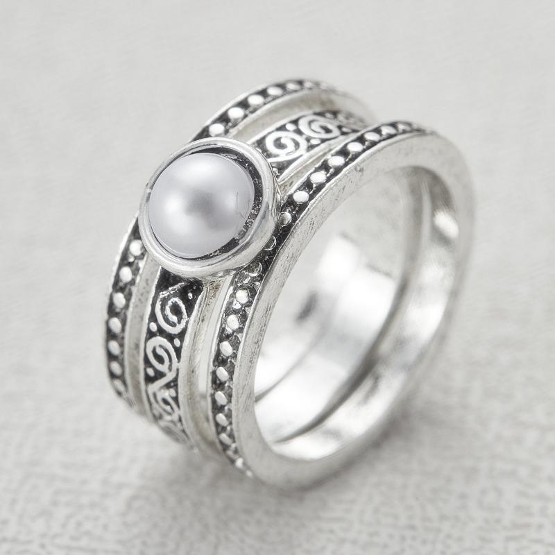 Luxury Ring with Retro Shiny White Imitation Pearl Shape Aristocratic Women'S Banquet Cocktail Personalized Ring Jewelry