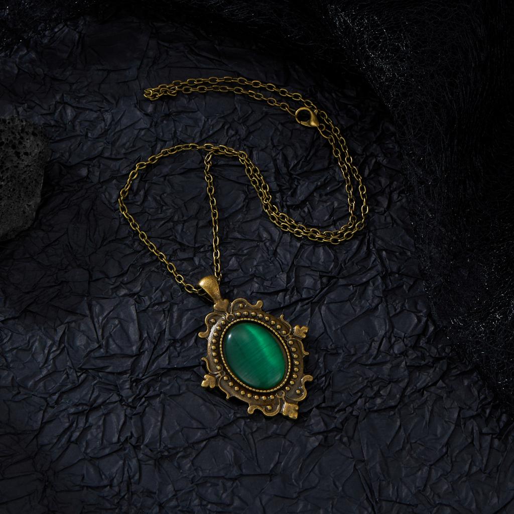 European and American Trend Gothic Green Red Vampire Mysterious Pagan Witch Jewelry Retro Relief Pendant Necklaces Gift