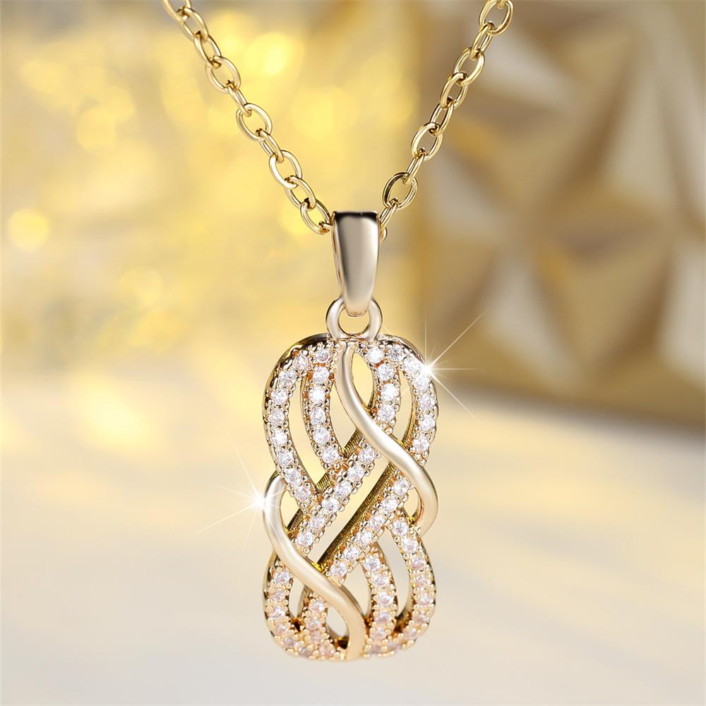 White Zircon Antique Hollow Infinity Pendant Necklaces for Women Vintage Gold Color Chain Necklace Wedding Jewelry Birthday Gift