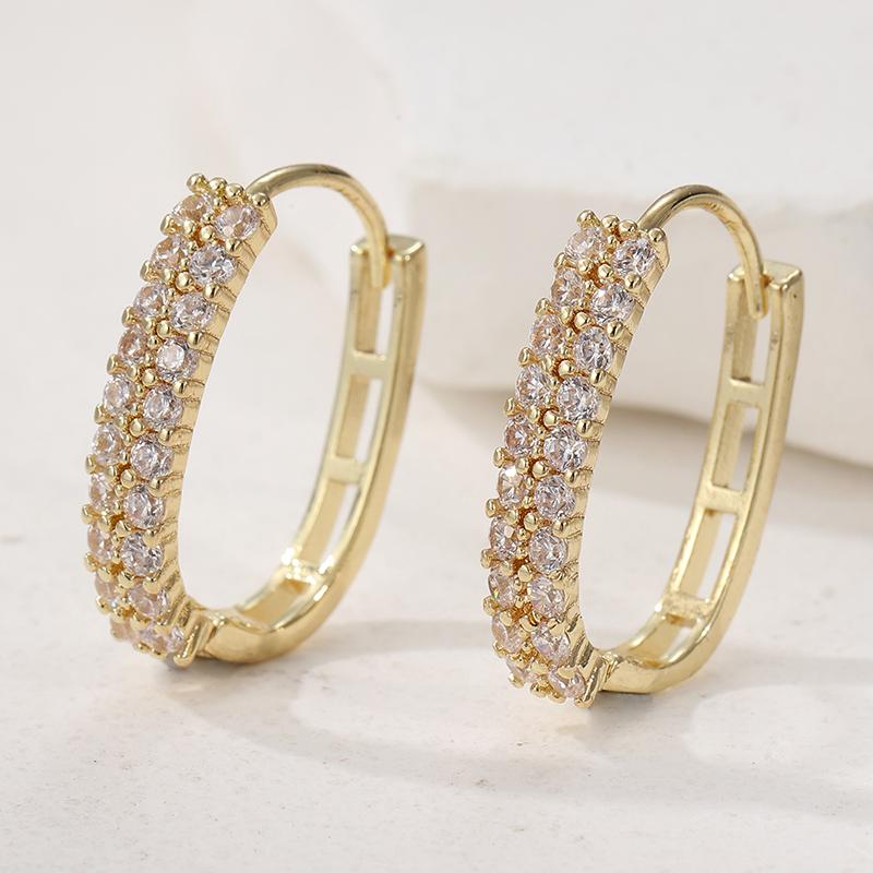 Concise Sparking Synthetic Zirconia Inlaid U Shape Hoop Earrings Women's Golden Plated Geometric Jewelry Wedding Crafts