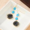 Bohemian Style Handmade Synthetic Turquoise Dangle Earrings for Women Vintage Copper Material Vacation Jewelry Accessories Gifts