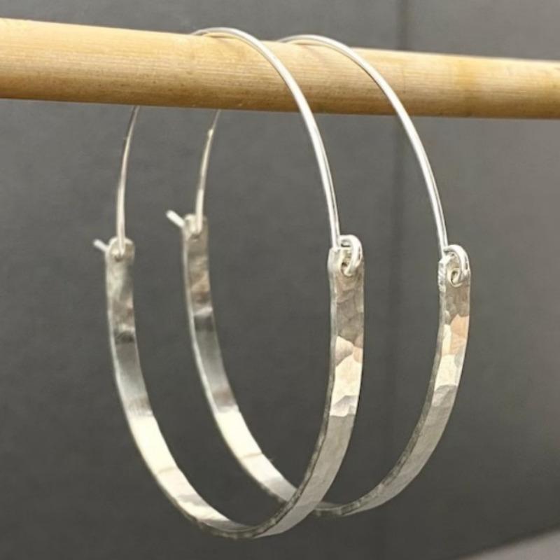 Large Hoop Earrings, Hammered Boho Hoops