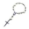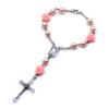 QIGO Glass Pearl Rosary Bracelets Resin Rose Flower Cross Religous Jewelry