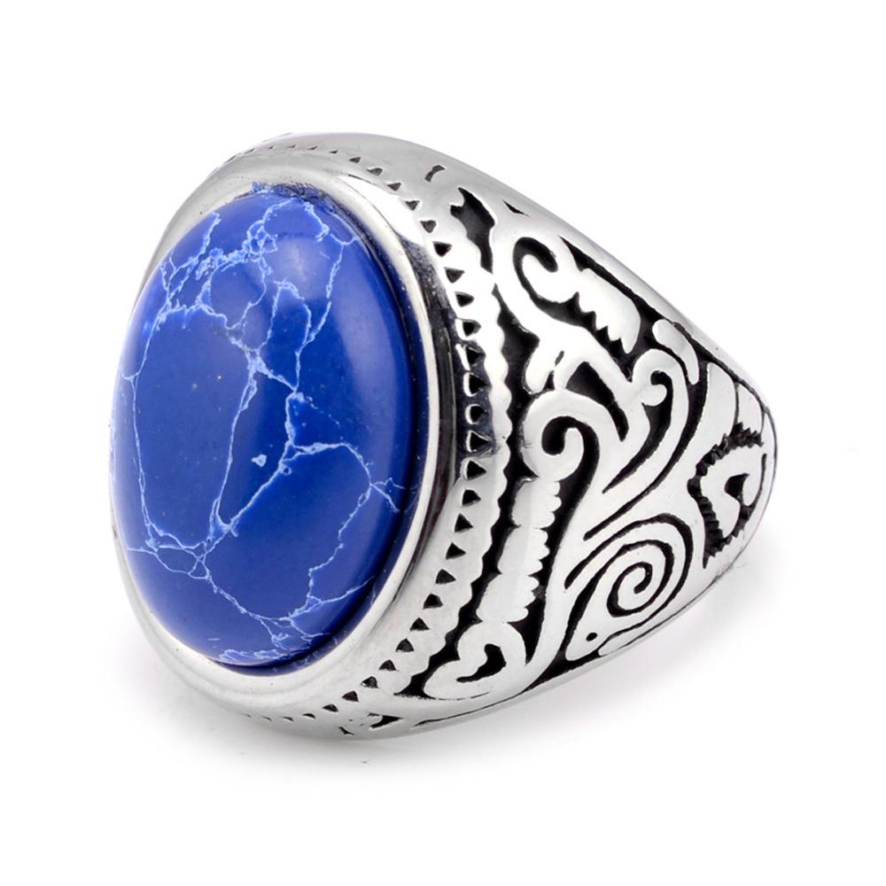 316L Stainless Steel Ring With Black Onyx & Turquoise High Quality Jewelry Factory Direct Sale