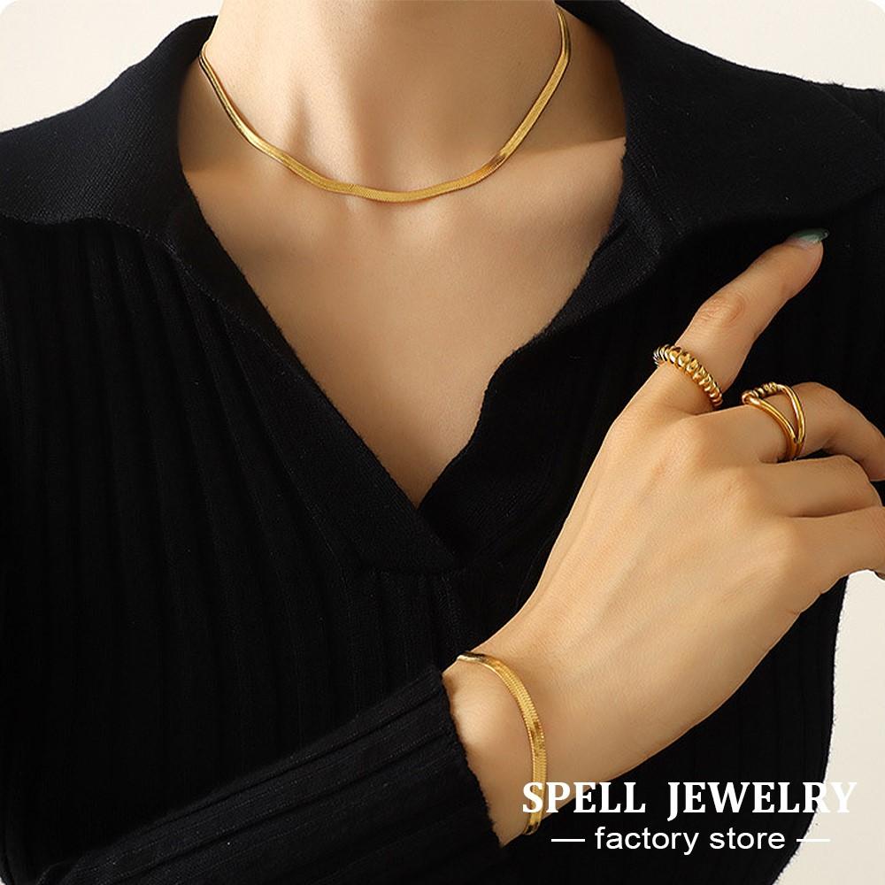 Flat Snake Chain Necklaces Matching Bracelets In 18k Gold Plated Stainless Steel Herringbone Chains Necklace Bracelet For Women