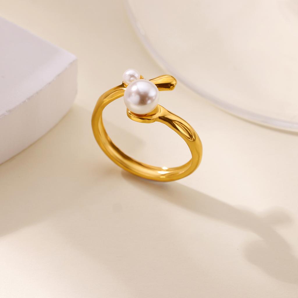 Elegant Cute Imitation Pearl Rings for Women Stainless Steel Opening Gold Color Finger Ring New Trend Aesthetic Jewelry Gifts