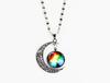 Bohemian Starry Sky Galaxy Nebula Art Pattern Moon Glass Round Charm Pendant Necklace 2023 New Jewelry For Women