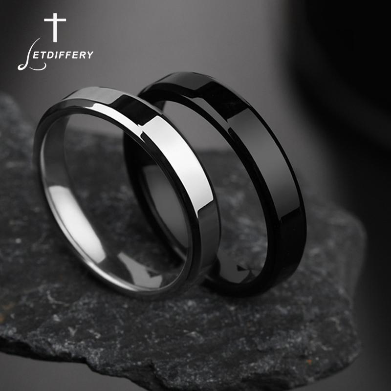 Letdiffery 4mm Simple Smooth Women Rings Black Stainless Steel Men Rings Birthday Gifts