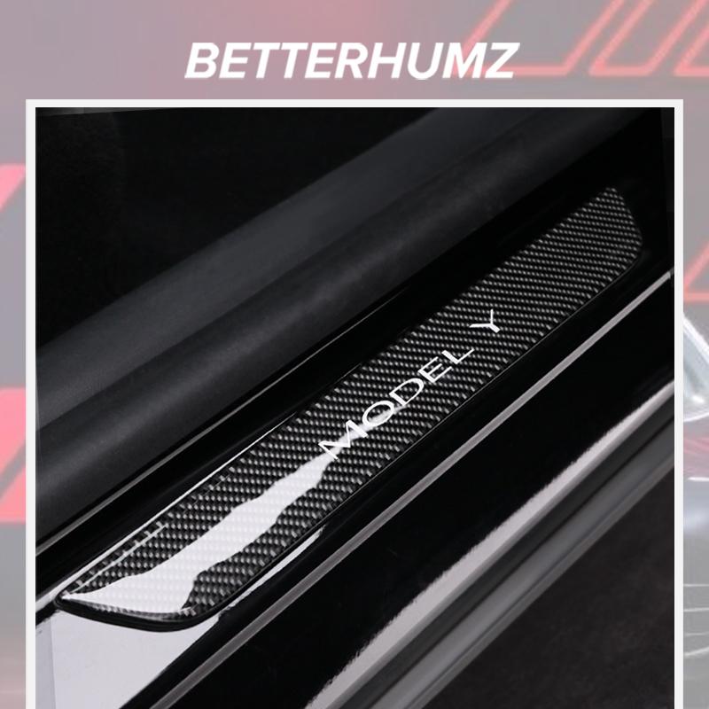 Carbon Fiber For Tesla Model Y -2024 Car Door Sill Panel Protector Trim Stickers Anti-scratch Accessories Tuning Decoration