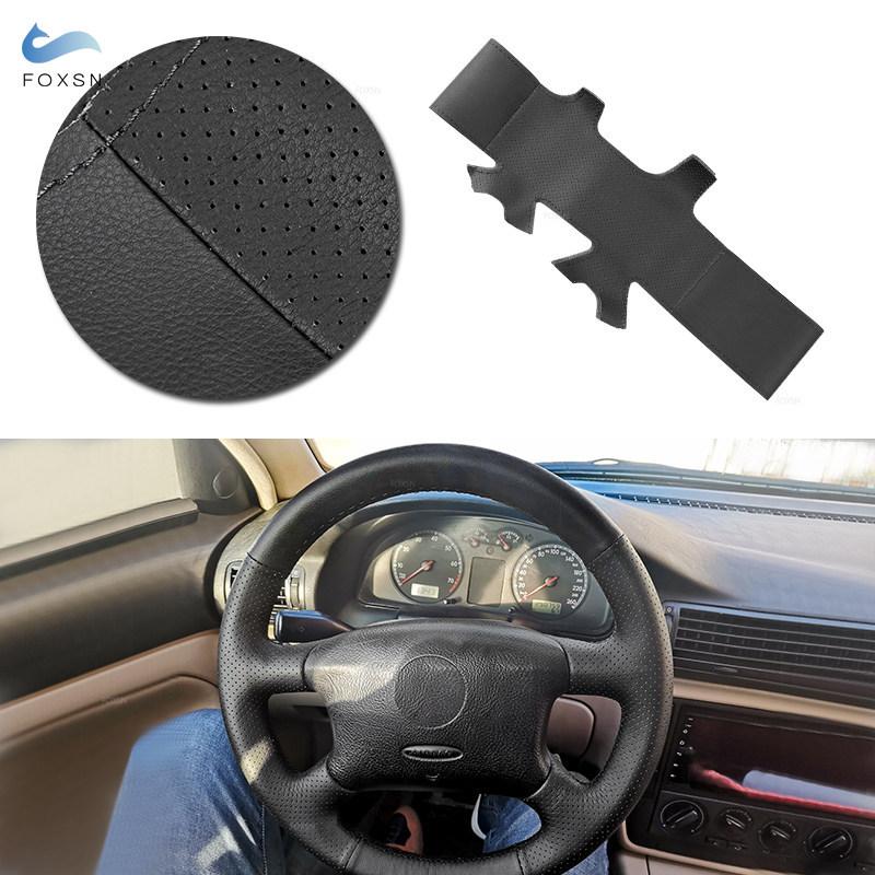 For VW Golf 4 MK4 Passat B5 1998-2005 (4-spoke) Hand-stitched Perforated Leather Car Styling Steering Wheel Cover Trim Black