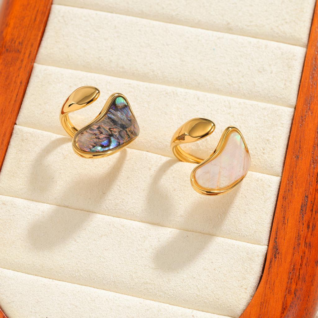 Stainless Steel Vintage Irregular Geometric Rings for Women Statement Retro Inlaid Shell Adjustable Open Ring Daily Jewelry Gift