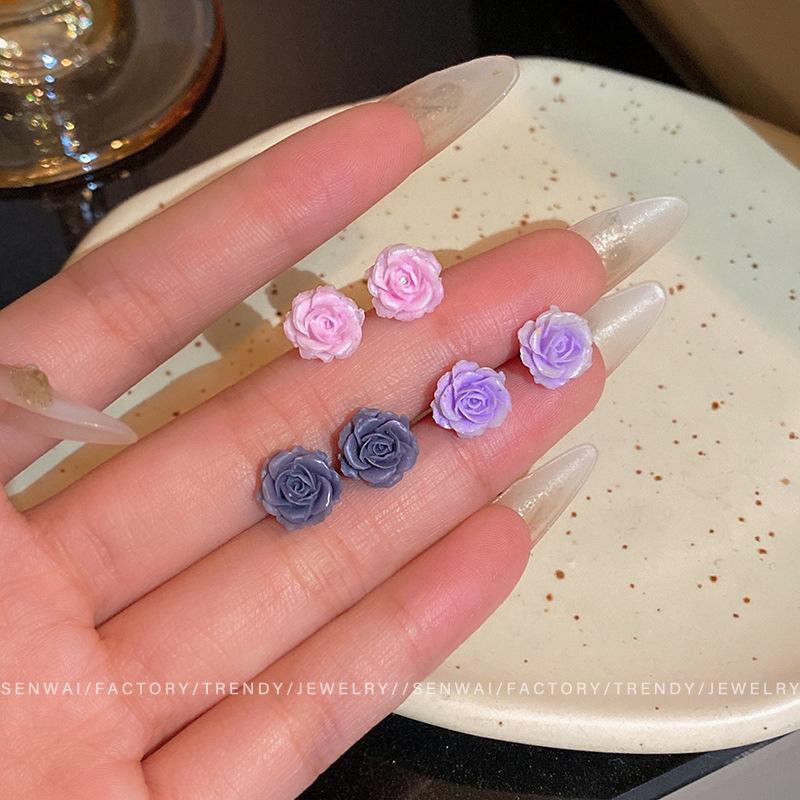 Dopamine Rose Flower Stud Earrings Women's Summer Small Earrings Design Sense Earrings