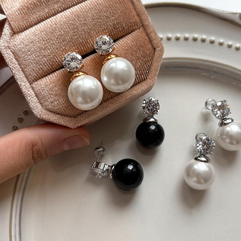 French Australian White Real Hemp Gray Large Pearl Diamond Stud Earrings Women's Earrings Earrings