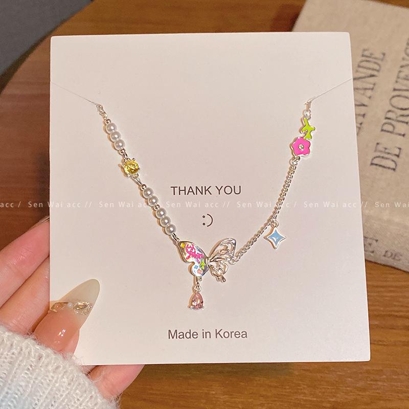 Dopamine Color Butterfly Pearl Necklace Female Sweet Design Clavicle Chain Unique Personality Neck Chain Accessories