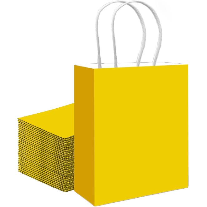 Qiqee 24PCS Medium Gift Bag with Handles Bulk 11"x5"x8" Gift Bags Bright Yellow Bags Multiple Uses (Medium Size)